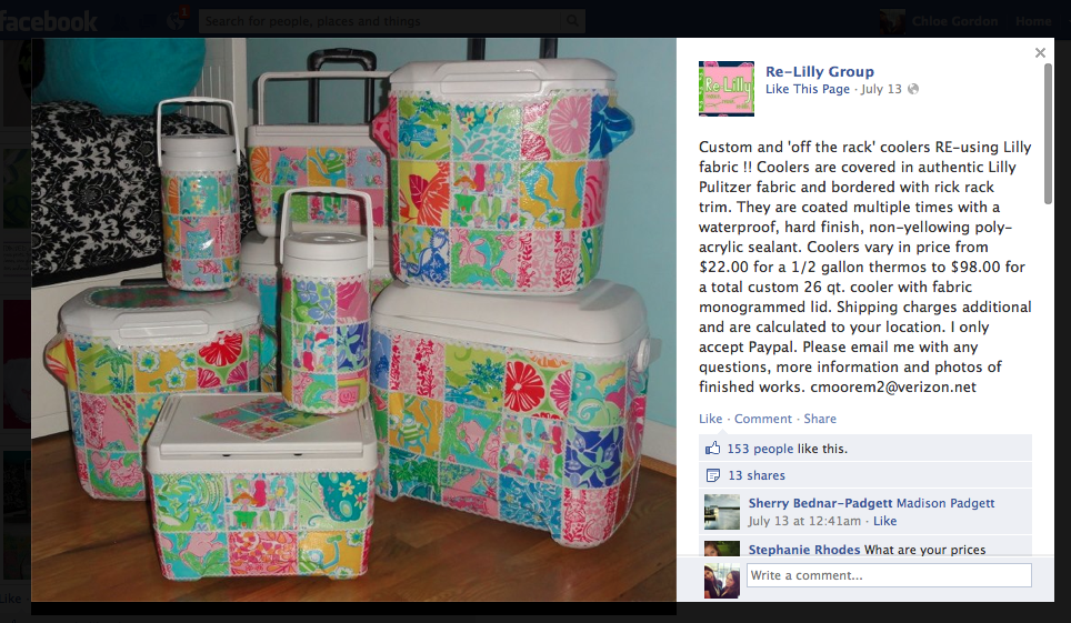 i might be telling some of y'all old news, but for others you're going to love me forever after you read this post!! i recently came across this Facebook page called "re-lilly". it's basically like ebay where people sell their old/new clothes for lower prices, but re-lilly is only a page for used Lilly Pulitzer clothes and homemade items using lilly patterns! how cool is that?! some deals are even better than what you can find when ruelala has a lilly pulitzer flash sale!